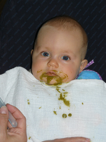 Der erste Löffel war Pastinake, macht nicht so viele Flecken. Aber siehe da, Ebba hat sich gar nicht doof angestellt und keine Sauerei veranstaltet. Wir waren (und sind es immer noch) hellauf begeistert, wie sie das Essen mit dem Löffel statt Trinken an der Brust gemeistert hat.