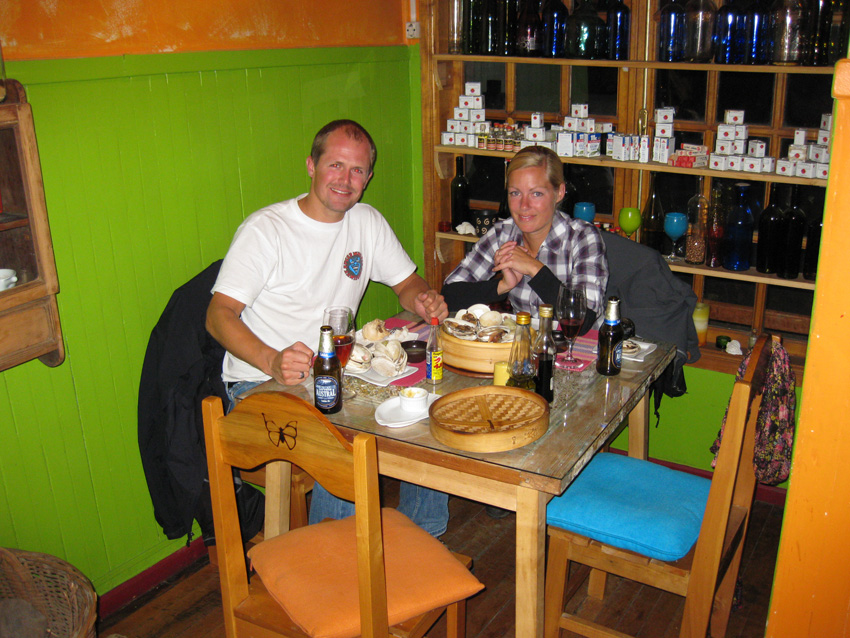 Den Abend ließen wir im stadtbekannten Restaurant ‚La Marmita‘ mit typisch chilenischem Essen ausklingen. Die Nationalspeise ‚Pilmao‘ hingegen erwies sich als absoluter Flop: ein Pott mit komischem Fleisch, gummilichen kalten Muschel und ein bißchen Sud vom Kochen. Da bleiben wir das nächste Mal doch lieber beim Filet Mignon!