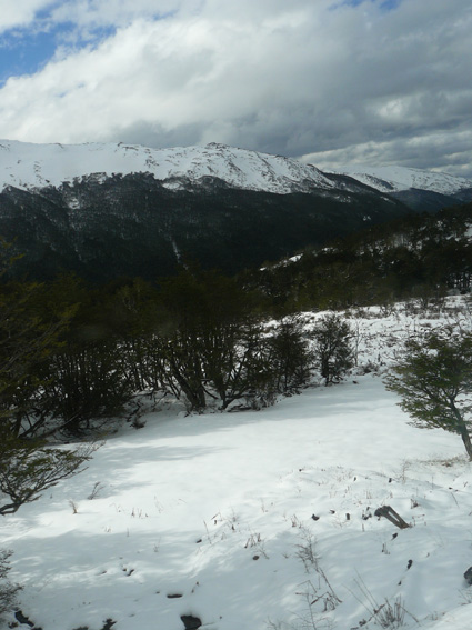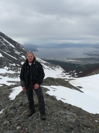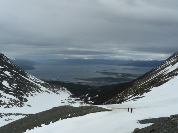 Die Wanderung hinauf zum Glaciar Martial ist nicht unbedingt der schönste Trekkingpfad, aber die Ausblicke auf die Stadt Ushuaia und den Beagle Kanal sind einfach atemberaubend. Und so stapften wir teilweise knietief durch den Schnee, um trotz Wolken den Ausblick von oben zu genießen. Kurz nachdem wir den Aussichtspunkt erreicht hatten, fing es auch schon an zu regnen.