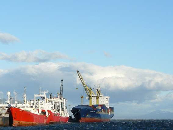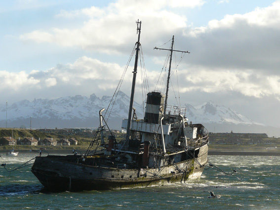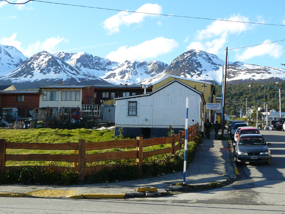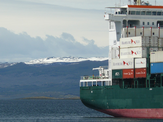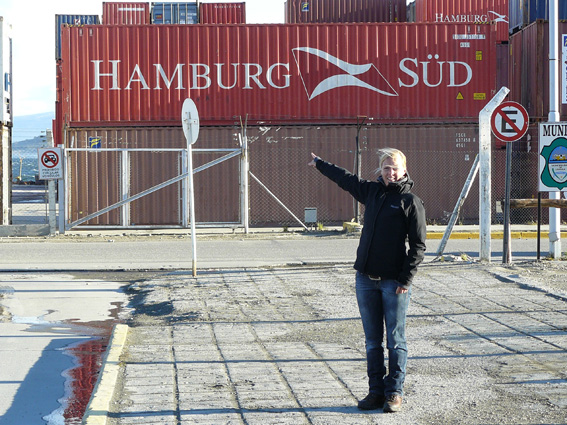 Nach dem etwas kargen Hostelfrühstück machten wir uns am Vormittag auf die Suche nach dem Landmark in Ushuaia: das Schild mit der Aufschrift ‚Fin del Mundo‘. Am Hafen wehte eine Steife Brise und man hatte unweigerlich tatsächlich das Gefühl, dass dies das Ende der Welt war. Neben einem roten Expeditionsschiff im Hafen schien es dort ganz emsig zuzugehen, und so endeckten wir auch gleich die vielen Container im Containerhafen mit der Aufschrift ‚Hamburg Süd‘. Da haben wir uns gleich wie zuhause gefühlt.