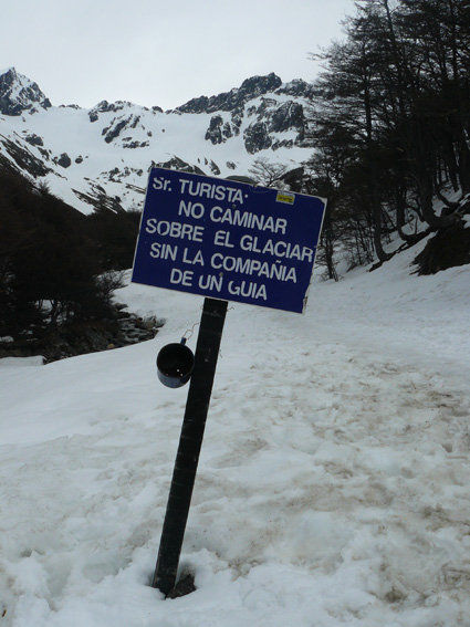 Und so war es dann natürlich auch heute. Kaum hatten wir die Hälfte des Tracks hinter uns, hörten wir schon seine laute, quakende Stimme mit seinem typisch australischen Akzent hinter uns durch den Wald. „Hey guys, I told you we would meet here!“ Er war seit ein paar Tagen mit seinen beiden Söhnen (vielleicht 10 und 12 Jahre alt) in Argentinien unterwegs, seine Frau hatte angeblich keine Lust auf Südamerika…oder vielleicht brauchte sie auch einfach mal ein bißchen Ruhe. Jedenfalls hatte Vati geplant, mit seinen Söhnen mal schön ne Bootstour in die Antarktis zu machen. Wie und wo die geplante 14tägige Bootstour durchs ewige Eis geendet ist, wissen wir nicht. Wir haben David nicht wieder getroffen. Aber ich bin sicher, er hat in den 14 Tagen an Bord alle Mitreisenden wunderbar unterhalten.