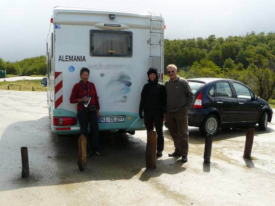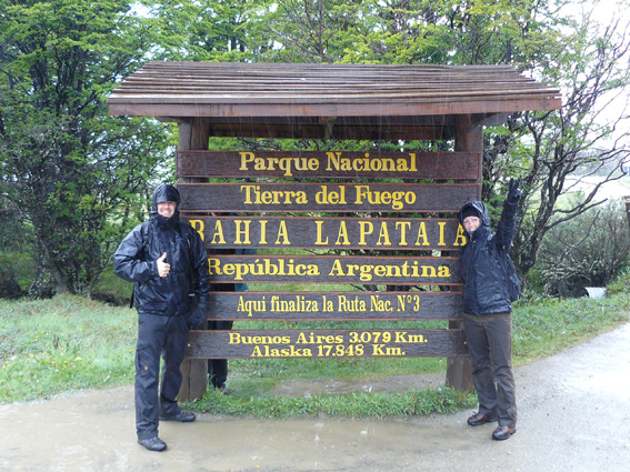 Nachdem wir unsere obligatorischen Fotos gemacht hatten und noch auf unseren Bus zurück nach Ushuaia warteten, fuhr auf einmal ein großer Campervan vor: ein kurzer Blick auf das Nummernschild reichte und so wurden die Neuankömmlinge mit einem nordischen Moin Moin begrüßt. Jaja, am Ende der Welt trifft man nun also die Nordlichter aus Kiel. Ein älteres Ehepaar aus Kiel war gemeinsam mit 16 anderen europäischen Fahrzeugen unterwegs, die gesamte Panamericana hinauf nach Alaska zu fahren. Hier und heute sollte offizieller Start sein. Ein paar Tage später trafen wir auch andere Reisende dieser Gruppe in El Calafate. Die Gruppe nennt sich ‚Seabreeze‘ oder so und hat 180 Tage Zeit für den Weg bis nach Alaska. Tolle Sache.