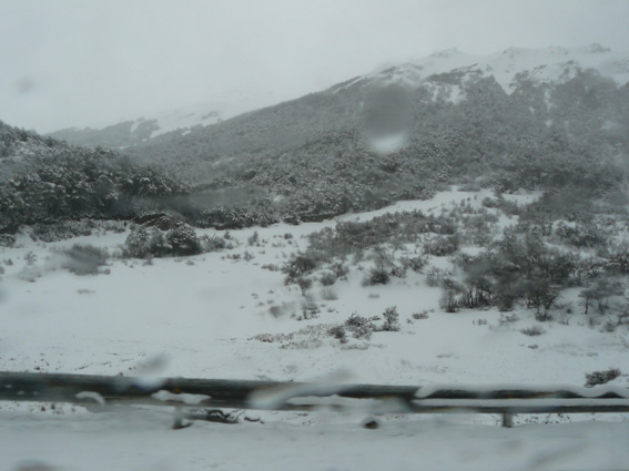Beim Sinkflug nach Punta Arenas sahen wir um uns herum plötzlich nur noch weißes Schneegestöber, keine Ahnung wie hoch wir waren und wann wir landen würden. Und mit einmal rumpelte es ganz dolle und wir hatten wieder festen Boden unter den Füßen. Draußen schneite es unablässig bei Temperaturen um den Gefrierpunkt. Und wir dachten, hier unten wäre jetzt Sommer…man lernt nie aus.