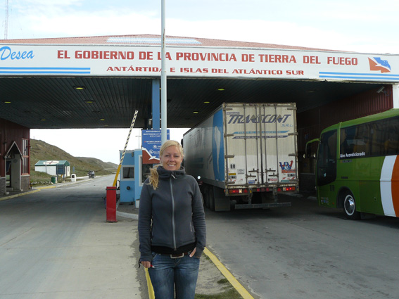 Nachdem die geteerte Straße sich mittlerweile in eine Schotterpiste verwandelt hatte, ging es nicht mehr ganz so flott voran. Nach ein paar Stunden erreichten wir dann den Grenzübergang. Erst hieß es Auschecken in Chile, Stempel abholen und alle wieder rein in den Bus. 15 Minuten später mussten dann alle wieder aus dem Bus und in Argentinien einchecken, Stempel abholen und diesmal das gesamte Gepäck durch den Scanner schieben. Was für ein Aufwand. Nach einer ganzen Weile am Grenzposten konnten wir dann endlich wieder unser Gepäck verstauen und uns auf den Weg nach Ushuaia machen.