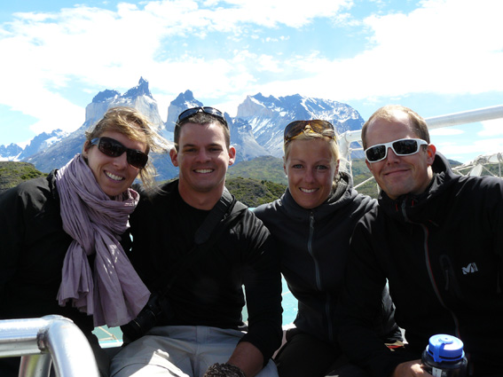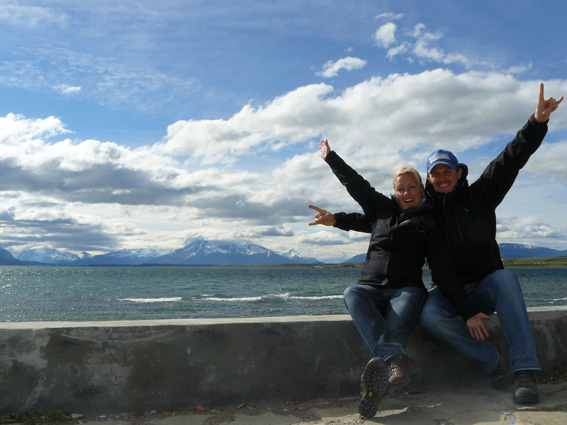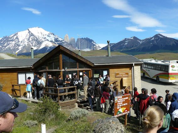 TAG 1: Pünktlich 7.30Uhr morgens holte uns wie vereinbart unser Bus Richtung Torres del Paine Nationalpark ab. Gemeinsam mit Dale und Emily ging es ungefähr zwei Stunden zum Eingang des Parks, wo erst mal der Parkeintritt gelöhnt werden musste. Der hielt sich aber mit 20€ noch einigermaßen im Rahmen. Dort trafen wir dann auch überraschenderweise Michi und Tim aus Deutschland, die wir in unserem Hostel in Santiago Ende November beim BBQ kennengelernt hatten. Die beiden hatten mittlerweile auch eine Menge erlebt. Leider waren wir auf unterschiedlichen Bussen und so blieb uns kaum Zeit, uns auf den neuesten Stand zu bringen. Die beiden hatten leider nur zwei Tage Zeit für den Torres del Paine und nicht die gleiche Route wie wir.