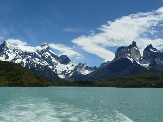 Der höchste Gipfel ist der Cerro Paine Grande, umgeben von den Spitzen des Paine Chico (1720m), der Torres del Paine (2850m) und der Cuernos del Paine (2600m). Im Park liegen zahlreiche blaugrüne Gletscherseen. In einem von ihnen, dem Lago Grey, treiben auch zur Sommerzeit dicke weißblaue Eisblöcke – schließlich brechen immer wieder unter großem Getöse meterhohe Eisblöcke aus der Eiswand des Greygletschers.