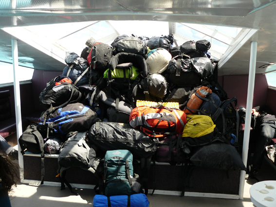 Und so sollte auch heute der Lago Grey und das Refugio/Campamento Grey unser Tagesziel sein. Gemeinsam mit Dale, Emily und Hanno aus Garmisch ging es mit dem Bus weiter bis zum Fähranleger am Lago Pehoé. Von hier aus brachte uns ein Katamaran, bis unters Dach gefüllt mit Backpackern, zum Ausgangspunkt des „W“ zum Refugio Paine Grande.