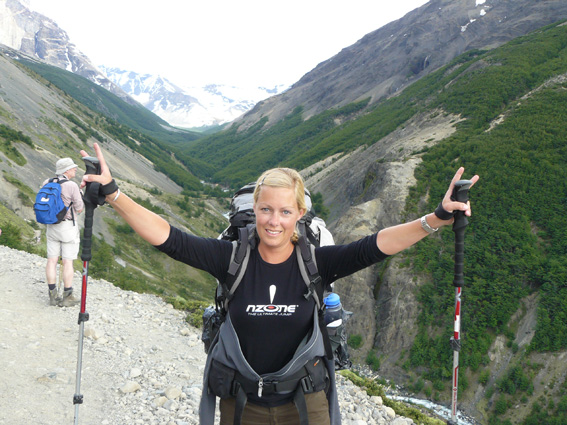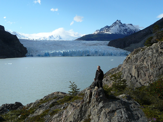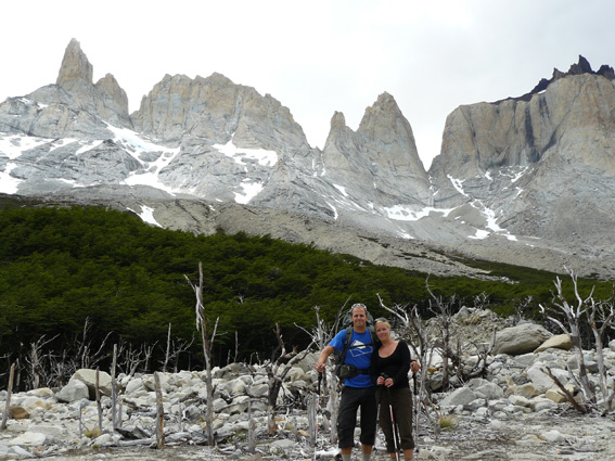 Kurz die Stiefel festgeschnürt und noch einen Schokoriegel reingeschoben, ging es ab auf den 11km langen Treck zum Gletscher Grey. Wir hatten bombiges Wetter, die Sonne schien, kaum ein Wölkchen am Himmel und dazu Temperaturen über 25Grad. Schon auf dem Weg zum Ausgangspunkt hatten wir klare Sicht auf die drei Torres, nach denen der Nationalpark benannt wurde.