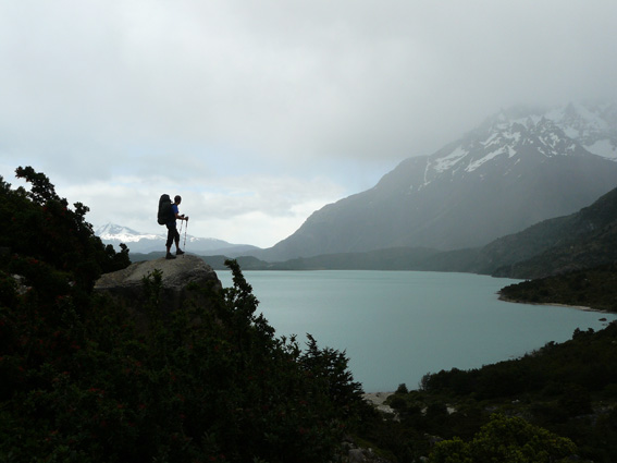 TAG 4: Heute sollte ein wirklich langer Tag werden. Vom Refugio y Campamento Los Cuernos führte ein 11km langer Weg entlang des traumhaften Lago Nordenskjold hinüber zum letzten Teil des „W“ – zu den Torres del Paine. Die Torres (Türme) sind drei in die Höhe ragende Felsspitzen und das Wahrzeichen des Nationalparks. Vielen Trekkern ist es nicht vergönnt, die Torres überhaupt ohne Wolken zu sehen. Die meiste Zeit sind sie wolkenverhangen.