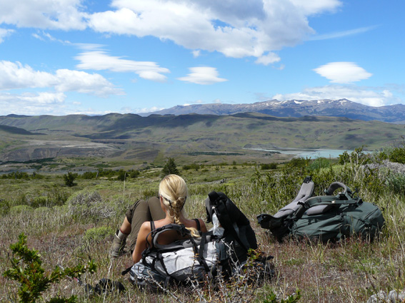 Unserer kleinen Wandertruppe, bestehend aus Dale, Lars, Hanno, Pierre und uns beiden, schloss sich nun auch die kleinen Truppe Studenten aus Santiago an. Das war eine wirklich lustige Combo. Drei Mädels und Paul, die bereits seit dem ersten Tag in unsere Richtung unterwegs waren! Alle vier sind gerade zum Auslandssemester an der Uni in Santiago, sind Anfang 20, haben Sommerferien und Zeit zum Reisen durch Südamerika. Paul kommt aus London, ein Mädel aus Finnland, eins aus Melbourne und eins aus Nordengland. Paul hat stets und ständig gesagt, wo’s langgeht, was gekocht wird, wo das Zelt aufgebaut wurde und wann wo wer welchen Ausblick genießen sollte…das war wie Kino für uns Zuschauer. 😉 Es war definitiv eine Bereicherung für unsere Truppe!! So machte sich jeder in seinem eigenen Tempo (oder Pauls Tempo) auf den Weg zum letzten Zeltplatz.