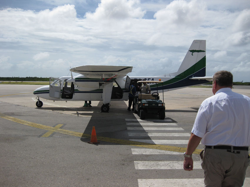 Um 11Uhr ging es dann mit einer winzigen Propellermaschine der hiesigen Fluggesellschaft Divi Divi (der letzte Absturz ist schon 5 Wochen her!) auf die Nachbarinsel Curacao. Irgendwie hatte ich ein mulmiges Gefühl, als wir uns gemeinsam mit unseren fünf Mitreisenden in den Miniflieger quetschen, der damit auch schon voll besetzt war.