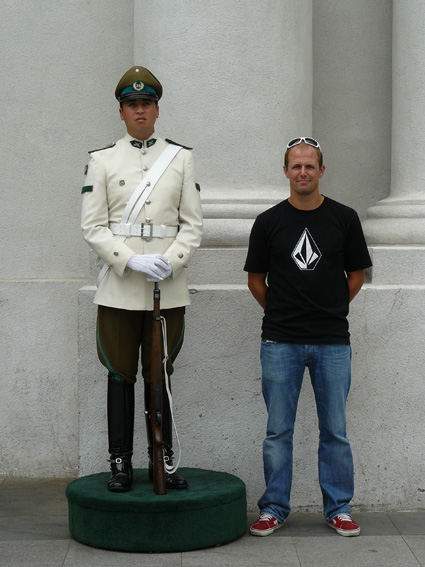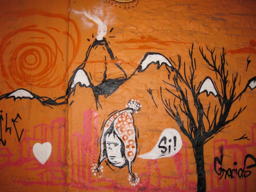 Mittlerweile haben wir ausgeschlafen, uns erholt und schon ein paar Tage die Stadt erkundet. Auch wenn Santiago sehr europäisch, sauber und vor allem gut organisiert ist, so spürt man doch vom ersten Moment an diesen ganz bestimmten südamerikanischen Flair. Es ist schwer zu beschreiben, was genau es ausmacht, dass wir uns so wohl fühlen hier in der Stadt. Unser kleines Hostal hat jedenfalls eine sehr familiäre Atmosphäre und unsere Hostalmama und ihr Mann versuchen, uns den Aufenthalt so schön wie möglich zu gestalten. Jeden Morgen kocht sie uns Kaffee und macht uns Frühstück, putzt den ganzen Tag und lächelt uns stets und ständig zu, auch wenn sie gerade erst das Chaos in unserem Zimmer beseitigt hat, wie es unsere Mütter damals gemacht haben, als wir Kinder waren und das Wort Aufräumen noch nicht kannten. Auch dass unsere Spanischkenntnisse vollkommen eingeschlafen sind, scheint hier keinen zu stören. Das Motto ist vielmehr: Auch das schlechteste Spanisch ist besser als gar kein Spanisch! Und so schlagen wir uns mit ein paar Brocken durch, haben uns ein Phrasebook gekauft und hoffen sehr, dass wir am Ende der Reise alles aufgefrischt haben.