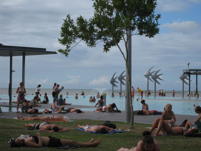 Townsville ist eine richtig große Stadt mit Promenade (the Strand), Shops, Restaurants und allem, was man für einen entspannten Urlaub benötigt. Wir haben einen sehr netten Platz direkt am Wasser auf nem netten Campingplatz mit einer Menge junger Leute hier auf den unpowered sites. Den Abend haben wir mit Christina und Tim verbracht, haben uns alte Reisegeschichten erzählt und Erfahrungen aus dem Annapurnagebirge ausgetauscht. Nicht nur uns ging es so auf dem Treck zum ABC, die beiden haben sich durch den Annapurna Circuit gequält 😉