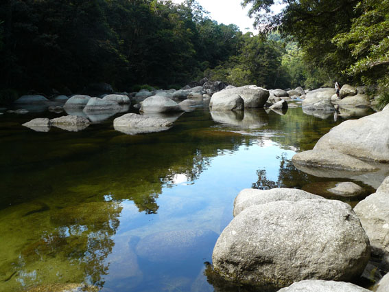 Gestartet sind wir heute morgen in Port Douglas Richtung Mossman. Dort war die erste Attraktion die ‘Mossman Gorge‘, ein Fluss, der mit den Jahren eine Schlucht gebildet hat. Leider war der 3,5km lange Rainforest Hike geschlossen und so haben wir ganz einsam und allein ein Bad in dem eiskalten Fluss mitsamt Fischen genommen. Herrlich!!