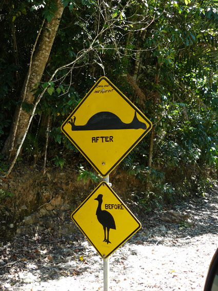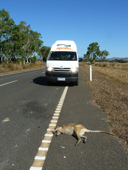 Wir warten noch immer auf unser erstes lebendes Kangoroo in Australien. Leider haben wir bis dato nur tote Kangoroos auf den australischen Straßen gesehen, auf der Strecke von Port Douglas nach Cooktown z.T. jeden Kilometer eins, kleine und große…mittlerweile verstehen wir auch den Aufkleber auf unserer Windschutzscheibe „arrive alive“ – da ist schon was dran.