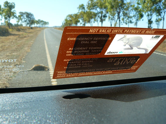 Da sitze ich heute das erste Mal hinterm Steuer unseres Campervans, alles auf der anderen Seite, links fahren, rechts überholen und auf einmal…hoppelt uns das erste lebende Kangoroo vor den Wagen! Es sah uns, Auge in Auge und mit einem großen Satz war es auch schon wieder im Busch verschwunden. Glück gehabt. Dank des Aufklebers auf unserer Windschutzscheibe erinnern wir uns: ARRIVE ALIVE!! Wir oder das Kangoroo? Beide!! Und keine zehn Minuten später das zweite lebende Kangoroo…danach leider nur noch viele, viele tote Freunde.