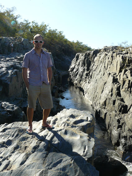 Nächster Stop auf dem Highway war der ‘Little Annan River‘, ein etwas größerer Creek, der momentan nicht halb soviel Wasser führt wie anscheinend sonst. Man überquert auf dem Weg hunderte von Creeks, kleinen Flüsschen, alle haben einen Namen, die meisten davon sind momentan eh komplett ausgetrocknet. Aber es scheint hier normalerweise viel Wasser zu haben, da stets und ständig vor Floodings gewarnt wird. Sogar Höhenangaben bis zu einem Meter findet man an allen tiefer gelegenen Straßenabschnitten, damit man mit seinen 4WD nicht absäuft. Wir sind jedenfalls heute durch einen dieser Creeks gekraxelt, der eine Menge Wasser führte. Und all das bei dem traumhaftesten Sonnenschein und mindestens 28Grad. Da freut man sich, wenn man im Camper auch mal die Klima anmachen kann;-)