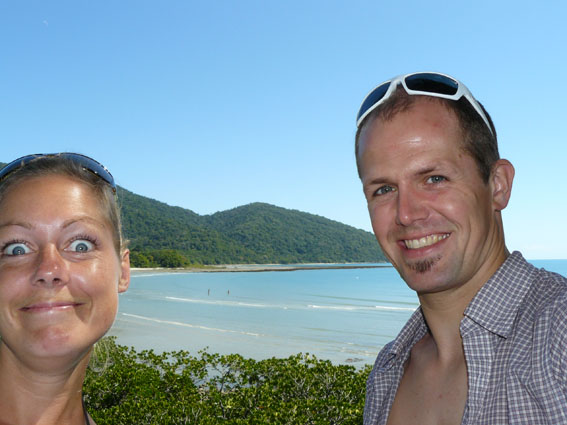 Unser neues Zuhause ist allerdings um Längen geräumiger als unser gutes Stück zuhause, man mag es fast als Luxus bezeichnen…sooo viel Platz. Von der Autovermietung ab zum riesen Woolworth und erstmal alles eingekauft, was wir für die kommenden Wochen benötigen. Trotz Linksfahren und obwohl alles irgendwie auf der anderen Seite ist (Rechts-vor-Links gibt es hier aber auch, nicht Links-vor-Rechts, wie wir erst dachten!), haben wir den ersten Tag auf dem Captain Cook Highway No44 gemeistert. Die Straße windet sich entlang der australischen Ostküste, gesäumt von zahlreichen Palmen, vorbei an traumhaftesten Stränden mit weißem Sand…diese hammermäßigen Ausblicke…so haben wir uns Australien vorgestellt 😉 Erster Beachstop heute war ‚Trinity Beach‘ nicht weit von Cairns entfernt. Wir haben uns ein paar leckere Thunfisch Tomatosalsa Sandwiches gebastelt und uns gemütlich an den Strand gesetzt, die Füße in der kühlen Brandung, die Sonne im Gesicht…