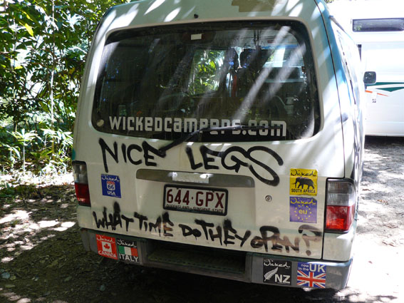 Unser Wicked Camper des Tages: „Nice legs – what time do they open?“