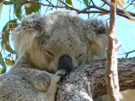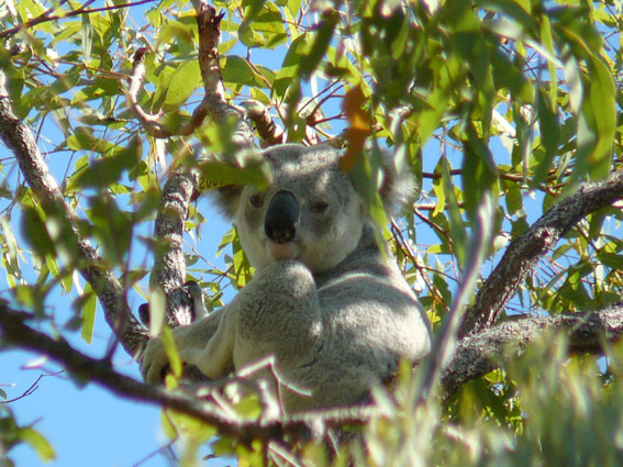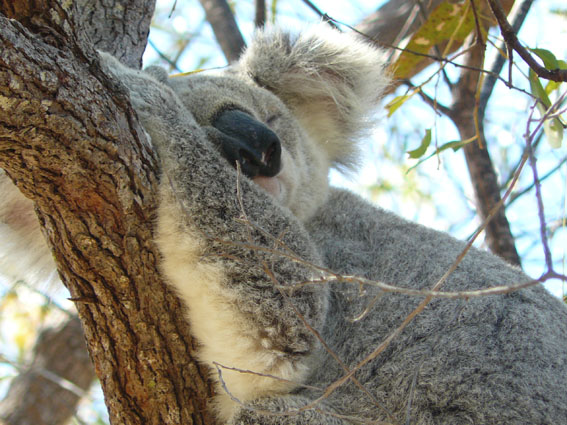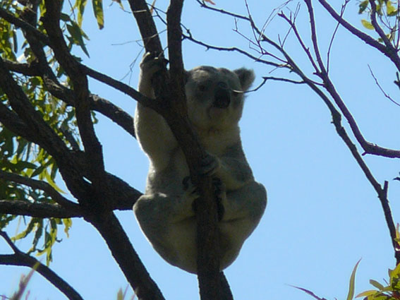 Wir hatten uns heute morgen spontan für einen Strandtag auf Magnetic Island (‘Maggie‘ wie die Australier ihre Insel liebevoll nennen) entschieden. Also ab zum Fähranleger, Badesachen eingepackt und ab gings auf die Insel. Als erstes sind wir in den Norden zur Horseshoe Bay gefahren, war ganz nett und sehr ruhig, wir haben am Strand gelegen, gelesen und im Halbschatten gedöst. Nach dem Mittag haben wir dann den 2 stündigen Treck zum Fort der Insel gemacht, der bekannt ist für seine Koalas in freier Wildbahn. Es gibt hier auch eine Art Wildlifepark, wo man Koalas und Kangoroos und alles aus nächster Nähe für 29$ besichtigen und zur Fütterungsstunde auch mal anfassen kann, aber das war uns dann doch zu touristisch. Nach nicht mal 10 Minuten auf dem Weg zum Fort hinauf haben wir unseren ersten knuffeligen Koala getroffen. Wir haben ihn ‘Maxwell‘ genannt. Er war sogar gerade wach, obwohl Koalas normalerweise 20 Stunden am Tag einfach nur schlafen.