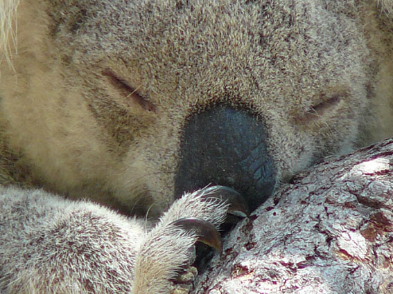 Er hat sich zweimal am Hintern gekratzt, in die Kamera geblinzelt mit seinen stecknadelgroßen Äuglein und sich dann wieder schlafen gelegt. Völlig glücklich, das erste Mal in unserem Leben einen Koala gesehen zu haben, marschierten wir weiter hinauf Richtung Fort. Kurze Zeit später entdeckten wir einen weiteren Koala schlafend im Baum, wir nannten sie ‘Lazy Lisa‘. Leider war sie nur halb so fotogen wie Maxwell. Seitdem waren unsere Augen nur noch auf die Wipfel der Bäume gerichtet und nicht, wie es auf jedem Warnschild steht auf den Boden: „Beware of snakes on the path!!“ Zudem hatten wir natürlich nur Flipflops an…sind aber keiner Schlange begegnet J. Nach einer ganzen Weile trafen wir unseren dritten süßen, schnuckeligen und putzigen Koala und nannten ihn ‘Sleepy Elly‘. Erst schlief sie noch ganz seelenruhig auf ihrem Ast, aber dann drehte sie sich um und zeigte uns ihre riesen Nase und die verschlafenen Augen. Was für ein Erlebnis!!